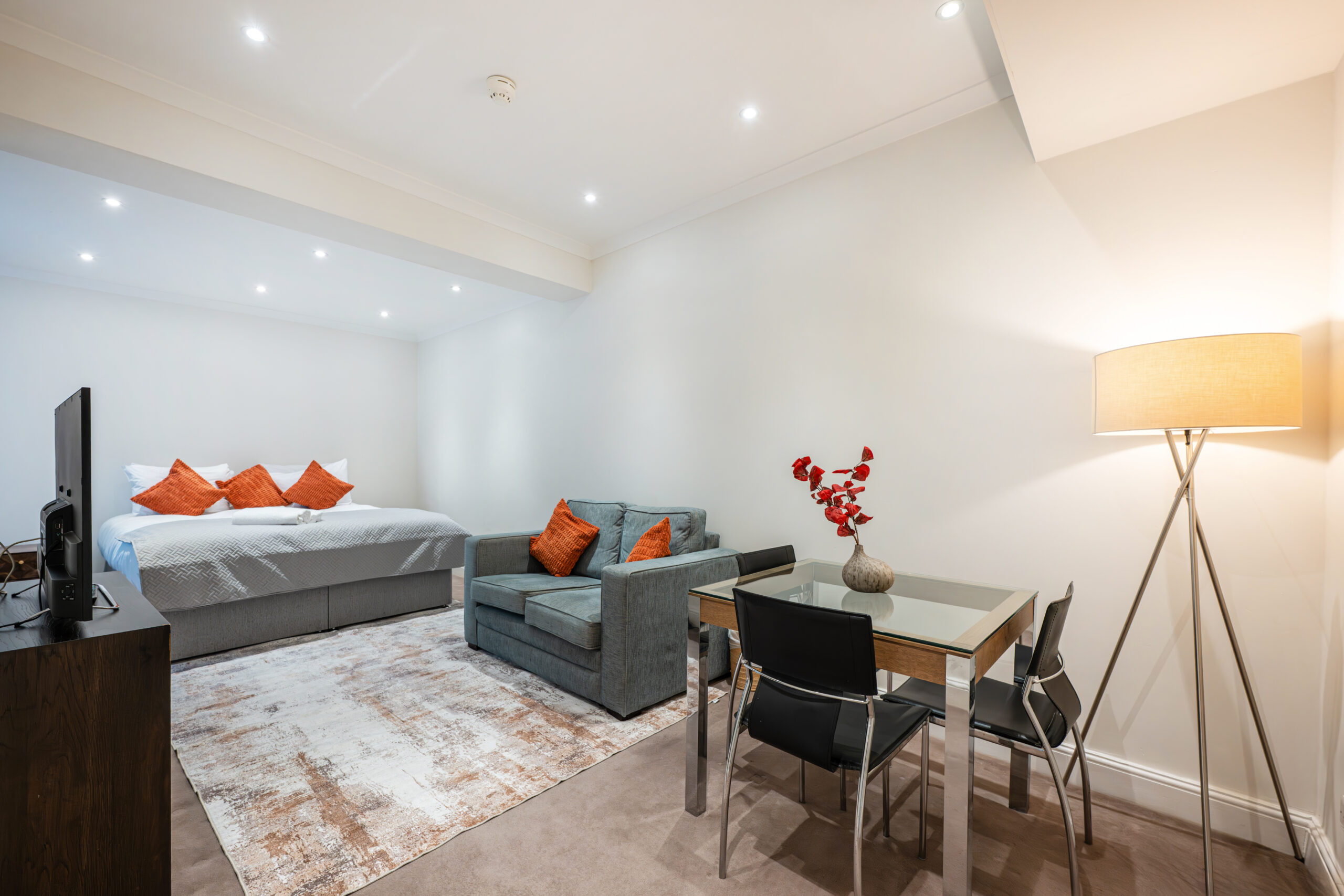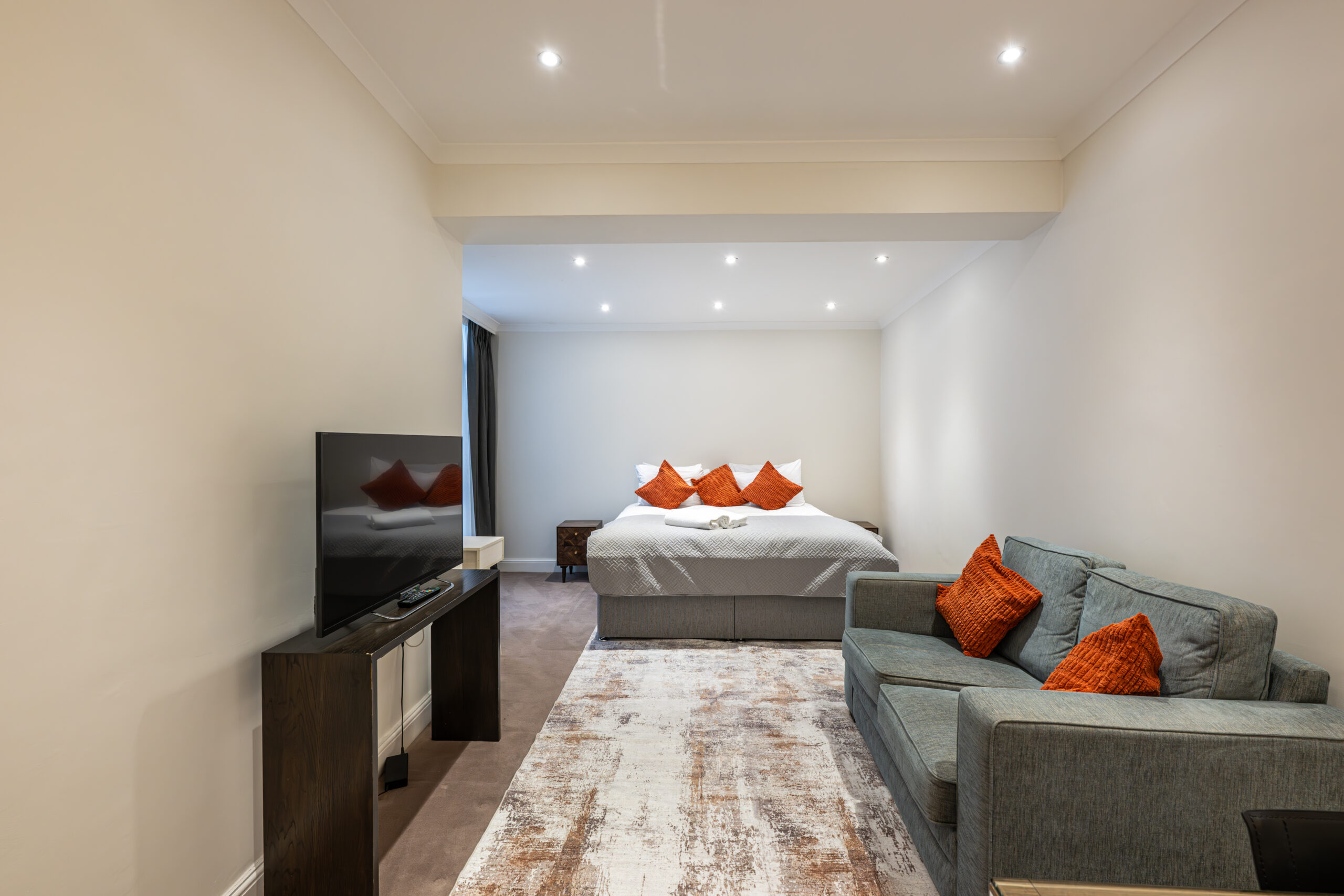 Our spacious studio apartment, located on the Lower Ground Floor, provides a comfortable, open-plan living and sleeping area.